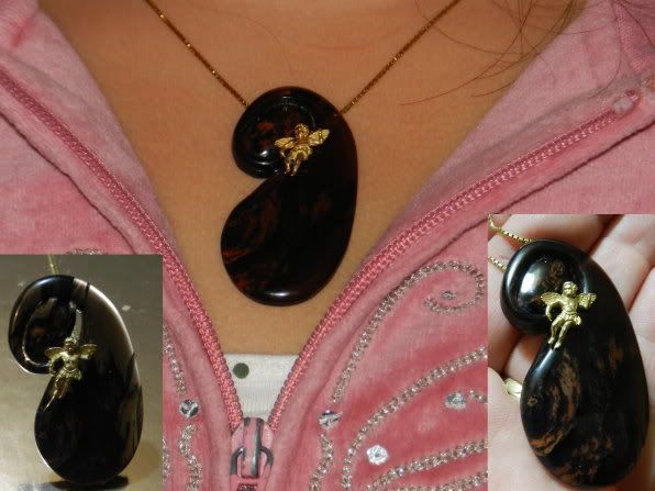 And ready to be worn. Over the weekend, I remembered having seen this pendant and I went back to the shop yesterday only to find out that it fits perfectly. At first, I was worried that running the chain behind the cab would make it tilt. But as it turns out, it barely affects the cab at all when hanging free.