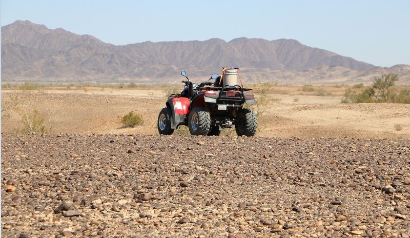 I borrowed a quad from a guy for this trip.  I can see why rockhounds like them!  It made exploring so much easier and I was able to see places I'd never have gone in my truck.  Here it is sitting on the "Pebble Terrace".