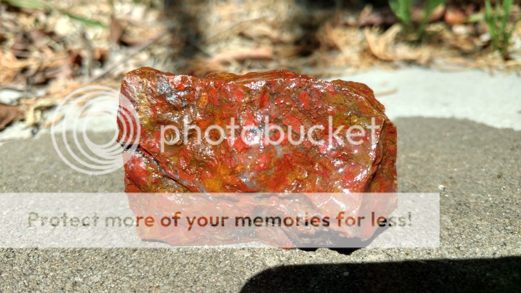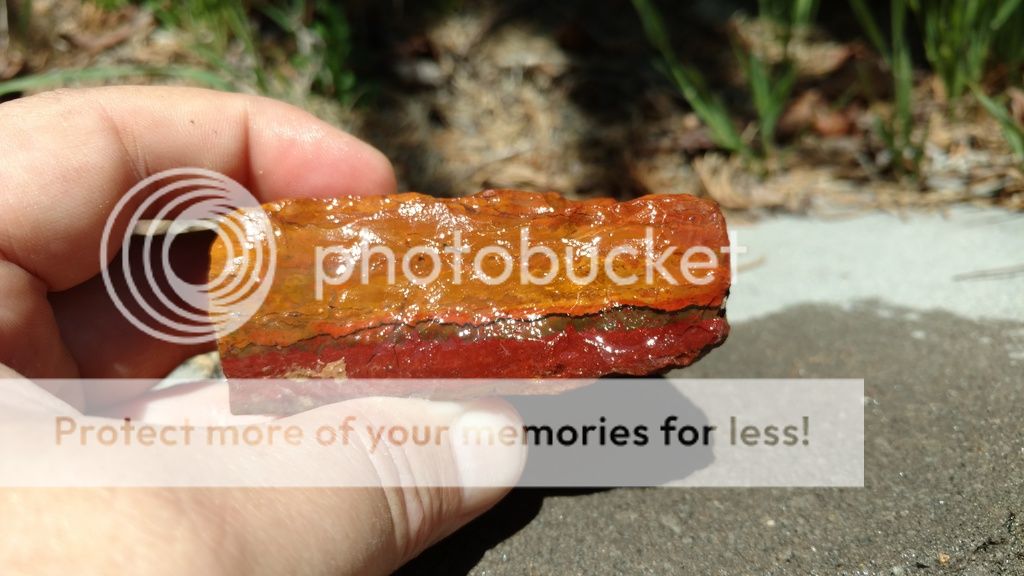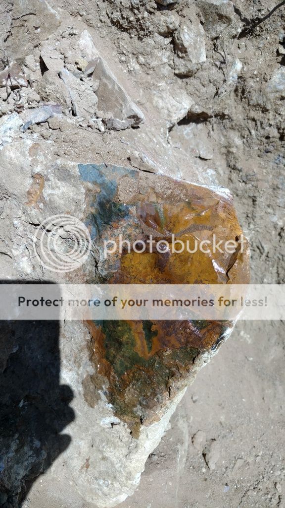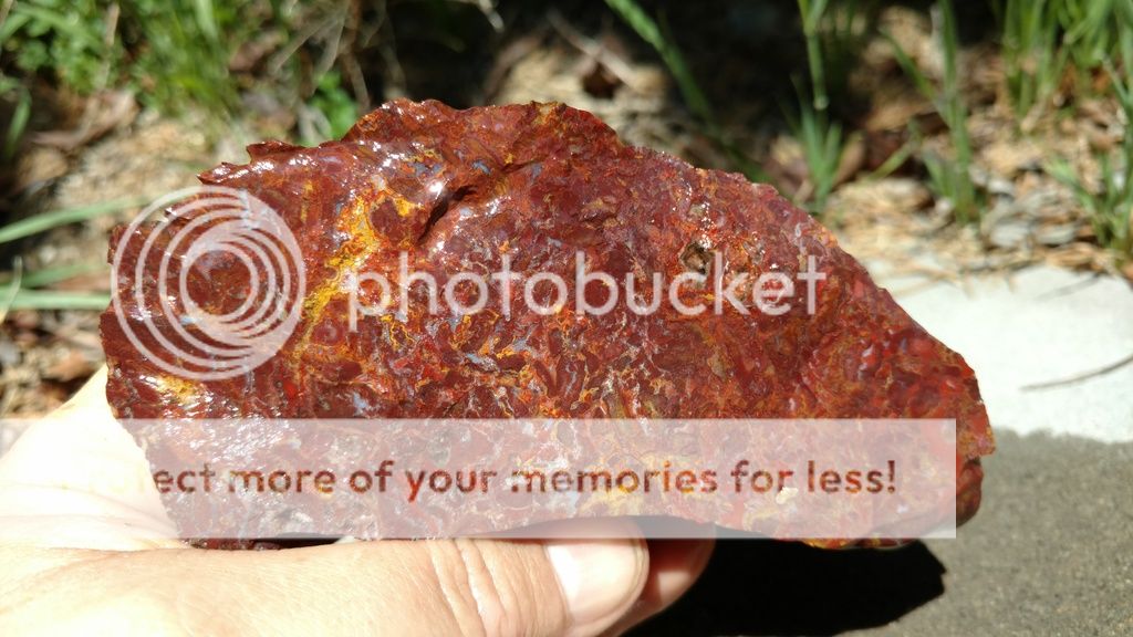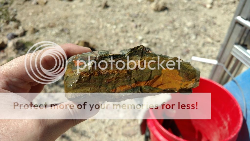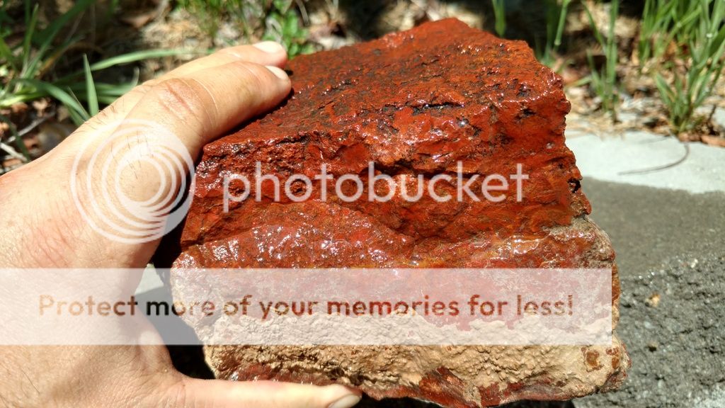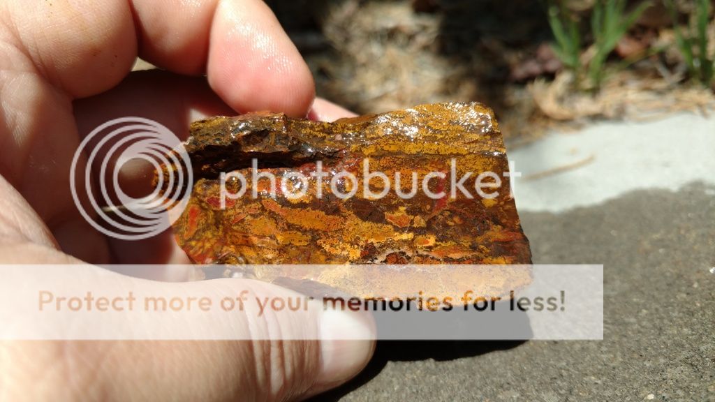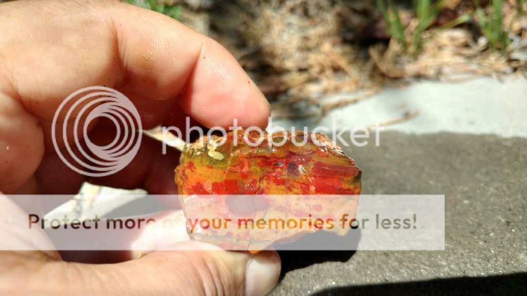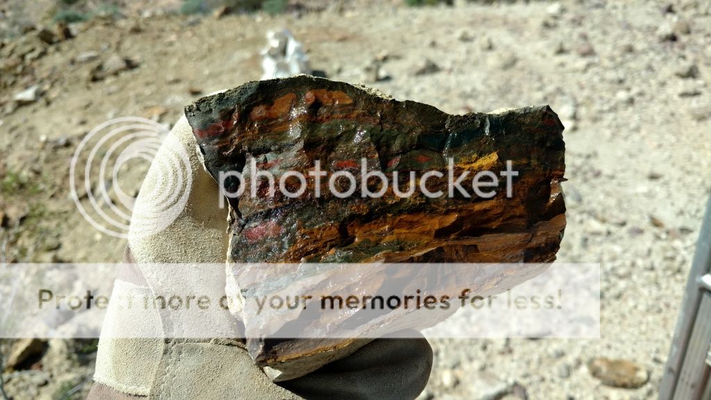 Lavic is one of my favorite places to hound. It is on the edge of the distance for a good day trip. There is a Dairy Queen nearby so we have hot food, real bathrooms, gas and most importantly ice cream :). The dirt roads are pretty well maintained so cars can get just about everywhere. The material is mostly on the surface so you don't need to dig. While i would not say the material is plentiful, if you try you will come home with some nice pieces of the target rock so it is a great place for a beginner and expert alike. What really gets me are the colors. The reds and oranges are just so vivid you almost can't help make something beautiful if you do a half way decent cab. The greens are so deep and rich and you get such a mix of colors. I went with a guide who has been hounding in this area for a couple of decades and you can't beat local knowledge. First we went to a place where we got some good 10 lb chunks of jasper with just a little digging. Then we went out to one of the main areas in Lavic and passed The Searchers rock club out of LA. They were taking a noon siesta since it was starting to get into the high 80s and we figured they probably cleaned out the area around their camp so we moved to the other side of the railroad tracks. Anyway enough talking, on to the eye candy ":)