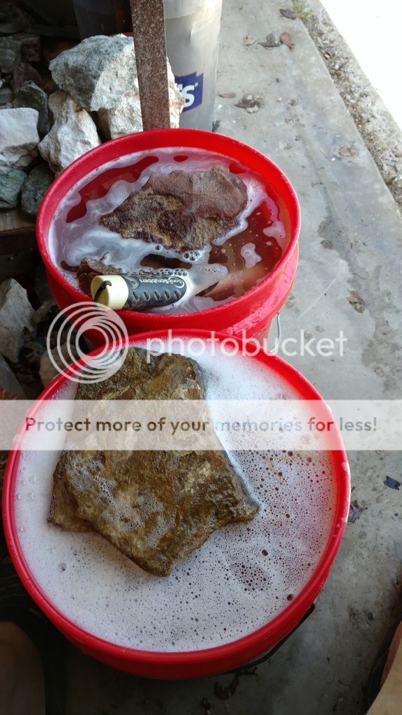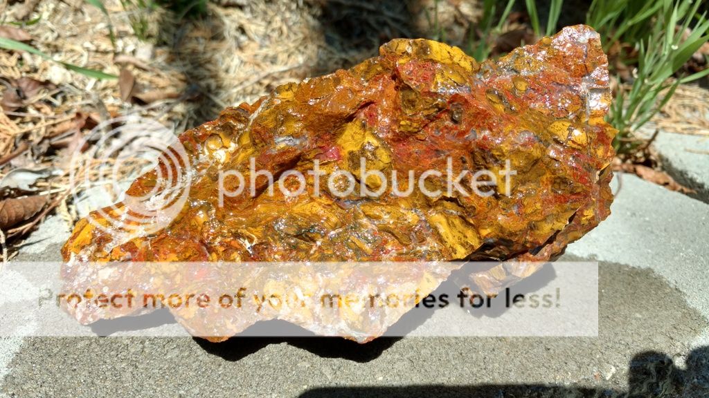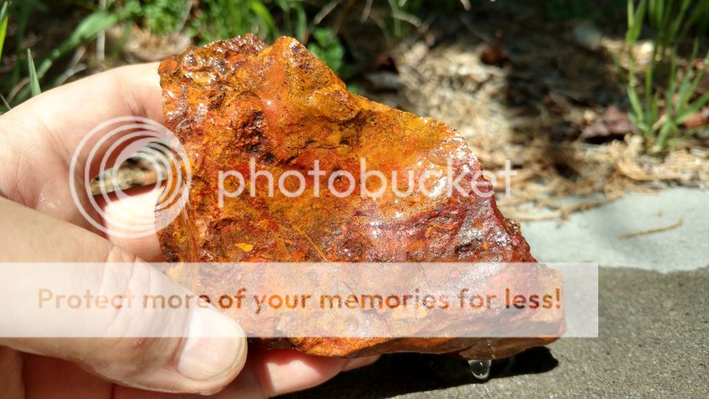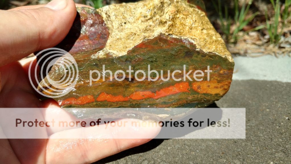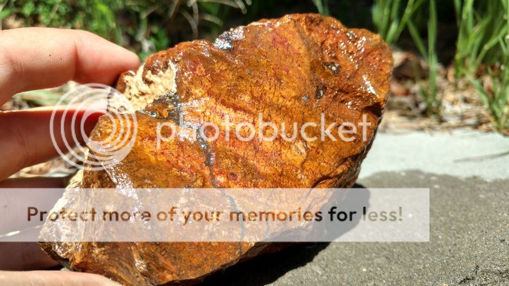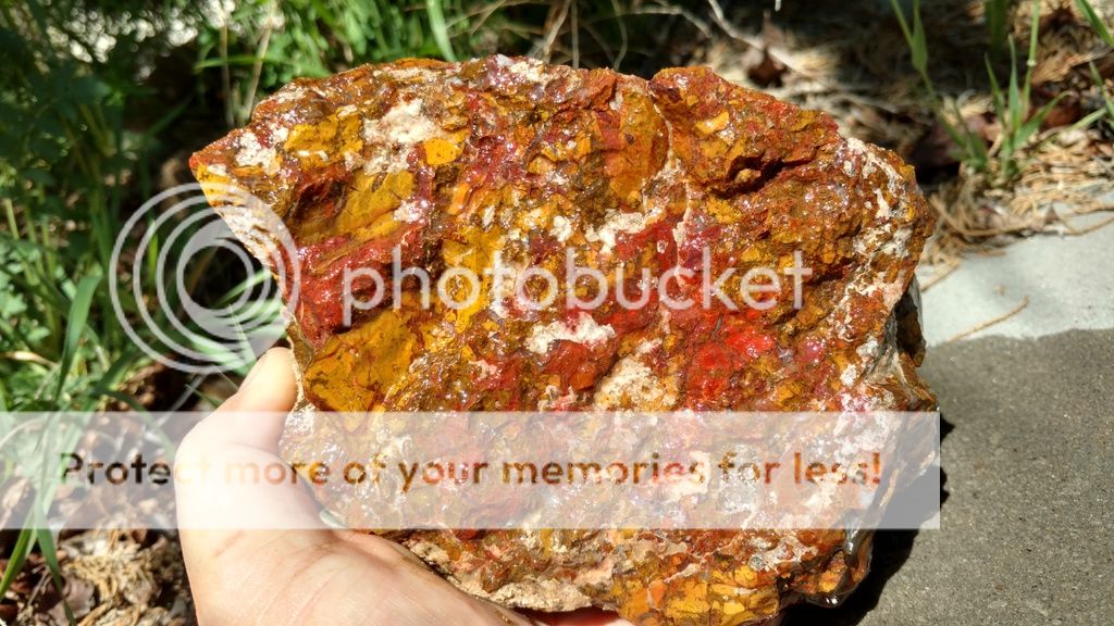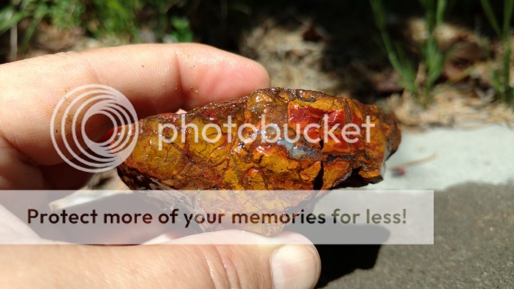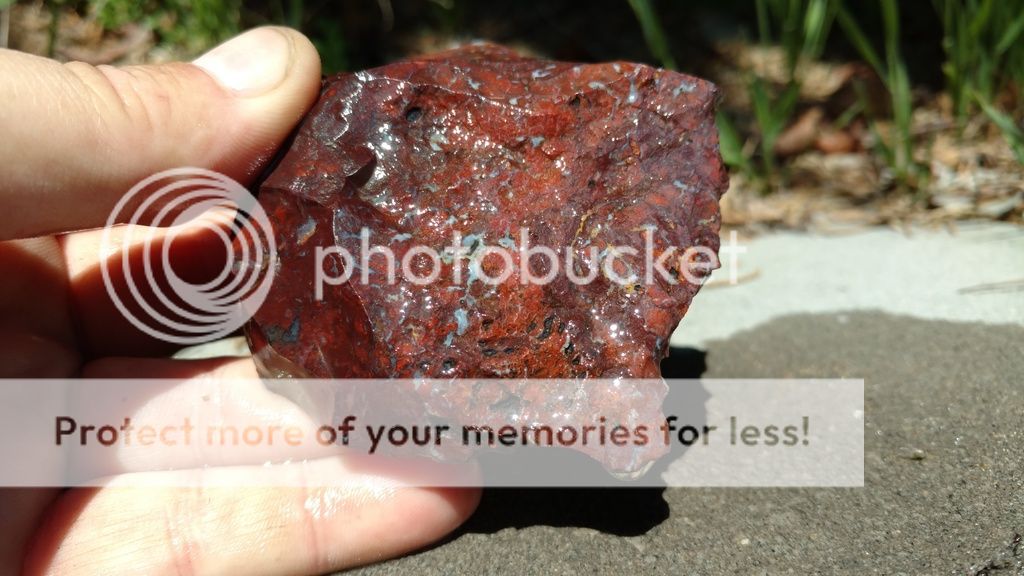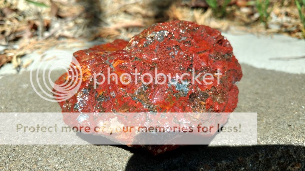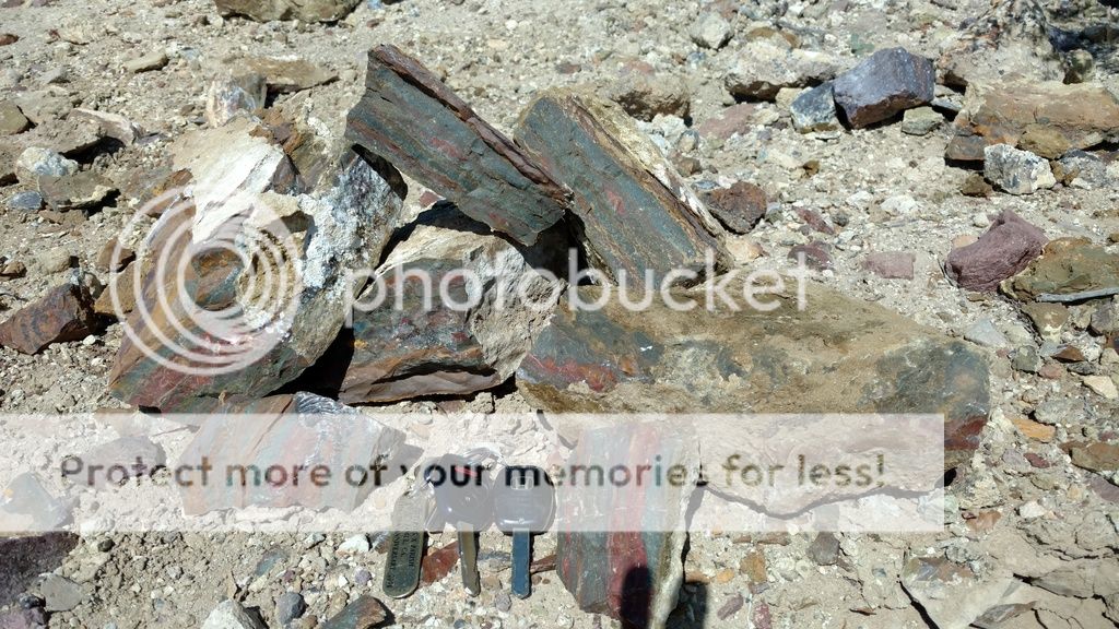 Lavic is one of my favorite places to hound. It is on the edge of the distance for a good day trip. There is a Dairy Queen nearby so we have hot food, real bathrooms, gas and most importantly ice cream :). The dirt roads are pretty well maintained so cars can get just about everywhere. The material is mostly on the surface so you don't need to dig. While i would not say the material is plentiful, if you try you will come home with some nice pieces of the target rock so it is a great place for a beginner and expert alike. What really gets me are the colors. The reds and oranges are just so vivid you almost can't help make something beautiful if you do a half way decent cab. The greens are so deep and rich and you get such a mix of colors. I went with a guide who has been hounding in this area for a couple of decades and you can't beat local knowledge. First we went to a place where we got some good 10 lb chunks of jasper with just a little digging. Then we went out to one of the main areas in Lavic and passed The Searchers rock club out of LA. They were taking a noon siesta since it was starting to get into the high 80s and we figured they probably cleaned out the area around their camp so we moved to the other side of the railroad tracks. Anyway enough talking, on to the eye candy ":)